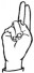 На ћирилици написано ЈЕЛЕНКА КАРАВЕСОВИЋ састоји се из 18 слова [?]. Исписано ћириличном једноручном азбуком за глувонеме: